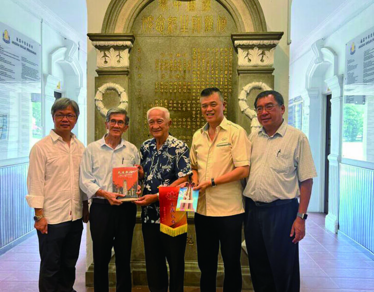吉隆坡广东义山董事会于4月再度拜访北马,他们参观了位于锺灵中学的“锺中殉难师生纪念碑”,并于该校董事会交流,左起:刘志荣、锺灵董事会代表、李振光、杨博耀、黄福威。
