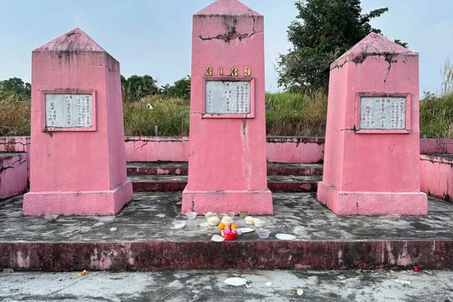 南株惨案殉难者公墓(笨珍福灵山殉难同胞三墓碑) 二战纪念碑柔佛 南株惨案殉难者公墓(笨珍福灵山殉难同胞三墓碑) 日军南下进入笨珍区时,大事搜刮,小至蔬菜,大至家禽牲畜,不管是鸡鸭牛羊猪,一概不放过,而且还是挨家挨户的搜索,无人能幸免。当这支部队来到柔佛路二十四碑处,路经埔来港然后直驱北干那那,就开始集体屠杀无辜平民。 1942年3月9日,一队人数约七八十人的日军,包围南株的永成胶园,胶园里的避难者人数达百多人。日军集合众人,将村民拴在椰树下曝晒一两小时,在拖往水沟旁,架起了机关枪朝他们扫射,当场血肉四溅,血水染红了水沟,尸体漂浮其中。侥幸生还者不敢动弹,一直等到傍晚时分才在昏暗中极力挣扎,相互协助挣脱了缚绑迅速离开,在就近的丛草里躲了一宿后逃往埔来港。 为了安抚这些被残酷杀害的游魂,殉难者家属在战后发起倡议集体拾骸,建墓立碑,合葬于笨珍路二十三碑福灵山之原,同时竖立起三座纪念碑。这三座纪念碑屹立于坟山入口处,中间那座略高,碑上有数目字“3139”,实为民国卅一年三月九日,也就是永成园大屠杀的日期。碑上有一碑文以红字写着:“中华民国三十一年三月九日惨遭日寇杀害于柔佛埔来之而南峇株华侨男女老幼殉难公冢”。这三座纪念碑在建竣后,于1946年7月28日举办各界公祭之日。pakunedafa8410July 12, 2025